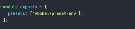 설치가 완료되면 babel.config.js에 프리셋을 적용시킨다.