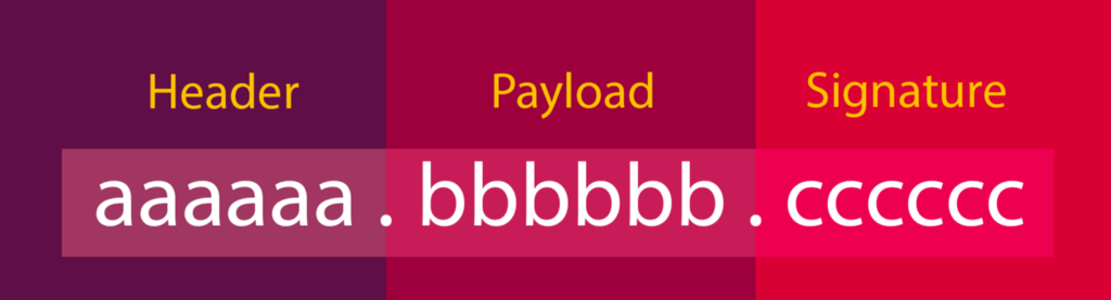 JWT도 일반 토큰과 마찬가지로 문자열로 이루어져 있다. 여기서 특징은 ' .'을 구분자로 하여 3가지 문자열로 나뉘어 있다는 점인데, Header, Payload, Signature 순으로 나뉘어있다.